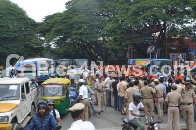 Event Description : Traffic jam at KG Road due to ABVP protest at SBM Circle , in Bengaluru on Wednesday 17th August 2016