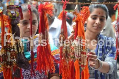 Photo Caption : People buying Raksha Bandhan on the eve of Raksha Bandhan festival, in Bengaluru on Wednesday 17th August 2016