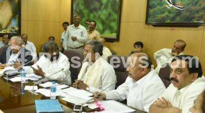 Photo Caption : CM Siddaramaiah with Ministers Roshan Baig, Eeshwar Kandre and others called on a review meeting on urban development and municipal administration department , in Bengaluru on Wednesday 17th August 2016