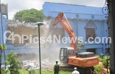 Photo Caption : Padmavathi Kalyana Mantapa at Raja Rajeshwarinagar being demolished by BBMP for encroachment of Rajakaluve, in Bengaluru on Thursday 18th August 2016