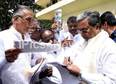 Photo Caption : CM Siddaramaiah seen listening to the public grievances during the Janatha Darshan at Krishna, in Bengaluru on Monday 22nd August 2016