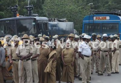 Photo Caption : Tight police vigilance at Freedom Park for the ABVP protest rally, in Bengaluru on Monday 22nd August 2016