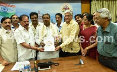 Event Description : Karnataka Film Chamber Members and Kannada Film Fraternity members called on CM Siddaramaiah and submitted a report on framing film policies at Krishna, in Bengaluru on Tuesday 23rd August 2016