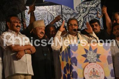 Photo Caption : CM Siddaramaiah with Ghulam Nabi Azad, Minister Roshan Baig, Mukhtar Abbas Naqvi, Union Minister, DV Sadananda Gowda, Union Minister and others inaugurated the Haj House at Tirumenahalli, Hegdenagar, in Bengaluru on Saturday 27th August 2016
