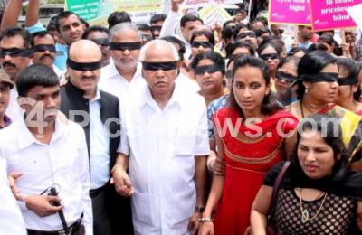 Photo Caption : Former CM and BJP State President BS Yeddyurappa with MLC Tara, Actress Shruti, Dr K Bhujanga Shetty, Chairman, Narayana Netralaya, MLA Suresh Kumar and others at the inauguration of donate eyes rally at Narayana Netralaya, in Bangalore on Sunday 28th August 2016