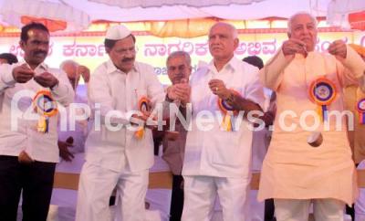 Photo Caption : Former CM and BJP State President BS Yeddyurappa with Allam Veerabhadrappa at the inauguration of Rotti Panchami at Kalagrama, in Bangalore on Sunday 28th August 2016