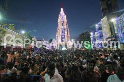 Photo Caption : Bangalore archbishop Bernard Moras seen with former minister K J George during the flag hoisting ceremony as thousands of devotees gathered to the annual St Marys feast and flag hoisting at St Marys Basilica Church at Shivajinagar, in Bengaluru on Monday 29th August 2016