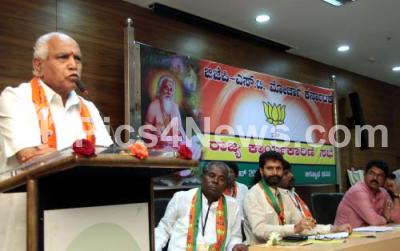 BJP State President BS Yeddyurappa addressing during State BJP SCST Morcha meeting at BJP Office, also seen are MLAs CT Ravi, R Ashoka and others, in Bengaluru on Thursday 1st September 2016