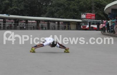 Photo Caption : A boy seen skating at the busy Majestic Bus Stand, as trade unions, Public Transport and various other oranisations were on a nationwide strike to protest the government alleged “indifference" to their demand for better wages and "anti worker" changes in labour laws, in Bengaluru on Friday 2nd September 2016