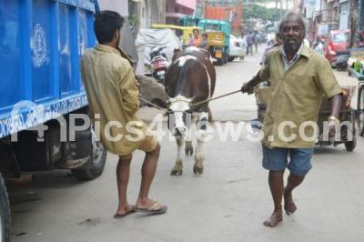 Event Description : Stray cows being nabbed by the concerned authority as they cause a lot of inconvenience to motorists n the roads, in Bengaluru on Saturday 3rd September 2016