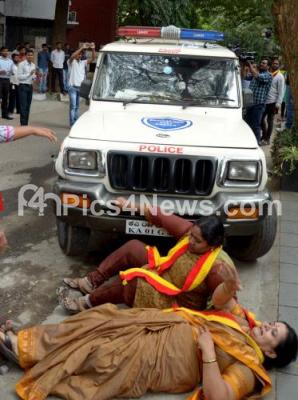 Members of Karnataka Janapara Vedike protesting in front of Water Resources Minister MB Patil residence against Supreme Court verdict on Cauvery water issue, in Bengaluru on Tuesday 6th September 2016