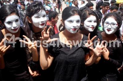 Photo Caption : Students of Bhagavan Mahveer Jain College partake in awareness campaign on Global Warming at Town Hall, in Bengaluru on Wednesday 7th September 2016