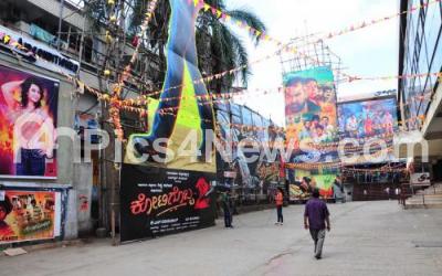 Photo Caption : Film theatres being closed following Kannada organizations called Karnataka Bandh to protest against the Supreme Court directive of releasing Cauvery Water to Tamil Nadu, in Bengaluru on Friday 9th September 2016