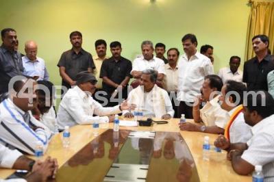 Photo Caption : Vatal Nagaraj and delegation called on CM Siddaramaiah at cauvery, in Bengaluru on Monday 12th September 2016
