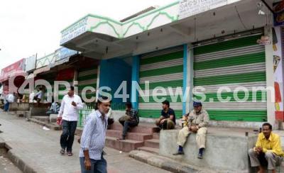 Photo Caption : Shops closed at Mysuru Road due to Kannada activists protest against Tamil Nadu Govt and Supreme Court verdict on Cauvery river water, protesters burnt more than 15 Tamil Nadu vehicles, in Bengaluru on Monday 12th September 2016