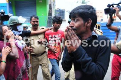 Photo Caption : Police arrest suspects, who were involved yesterdays violence at Vijaya Nagar during Section 144 imposed after violence broke in many parts of Bengaluru city on Cauvery river water issue, in Bengaluru on Tuesday 13th September 2016