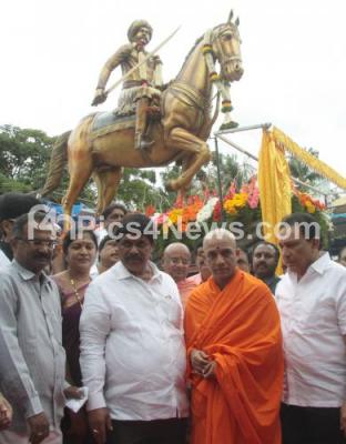 Photo Caption : Minister Krishnappa with Mayor Manjunath Reddy, MLA Gopalaiah, Deputy Mayor Hemalatah, Nirmalananda Swamiji and others at the inauguration of Kempegowda Statue at Mahalakshmi Pura, in Bengaluru on Wednesday 21st September 2016