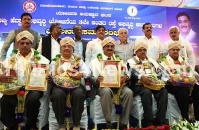 Photo Caption : Ministers RV Deshpande, Mahadevappa, T B Jayachnadra, H Anjaneya presented the Sir M Visveshvaraiah award to engineers during the inauguration of the Phase 3 of road improvement works of state highway development projects at Banquet Hall, Vidhan Soudha, in Bengaluru on Thursday 22nd September 2016