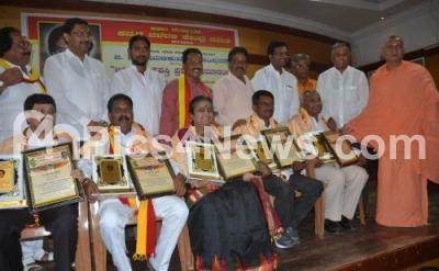 Sri Veerabhadrappa Channamalla Swamiji with V Somanna and others presented Jinaaku award to H Ravindra, T Shivakumar, Raphael Raj and others during the G Narayan Kumar Memorial program at Gandhi Bhavan, in Bengaluru on Monday 26th September 2016