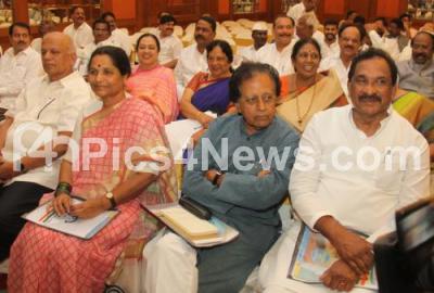 Photo Caption : Minister KJ George is seen with Prof BK Chandrashekhar and KPCC members seen at the KPCC executive committee meeting at Hotel Capitol, in Bengaluru on Tuesday 27th September 2016