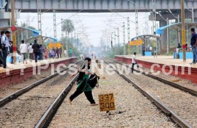 Hoodi Railway Station was inaugurated today by MP PC Mohan, where a large number of people were seen crossing the new tracks and train was flagged off from the new Hoodi Halt Station, in Bengaluru on Thursday 29th September 2016