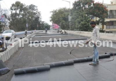 New roads being put up at Richmond Circle flyover and the traffic has been diverted from KH Road to Richmond Road, in Bengaluru on Friday 30th September 2016