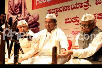 Photo Caption : CM Siddaramaiah with Minister HK Patil and Dr Ho Srinivasaiah during Gandhi Jayanti celebrations at Gandhi Bhavan, in Bengaluru on Sunday 2nd October 2016