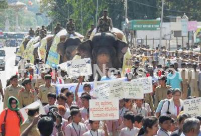 Event Name : Dasara Elephants and Students at Awareness Rally in Mysuru