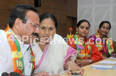 Photo Caption : Union Minister DV Sadananda Gowda with MP Shobha Karandlaje, BJP MLA R Ashok and BJP Leader Shruti at BJP Mahila Morcha meeting at Jagannath Bhavan, in Bengaluru on Thursday 6th October 2016