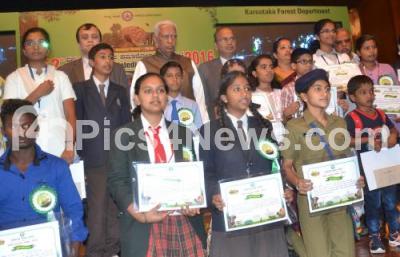 Photo Caption : Governor Vajubhai Vala felicitated meritorious students during the 62nd Wildlife Week Valedictory Function 2016 at IISC, in Bengaluru on Friday 7th October 2016
