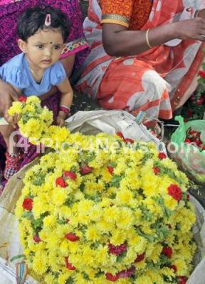 Photo Caption : People purchasing pooja items on the eve of Ayudha Pooja festival at KR Market, in Bengaluru on Sunday 9th October 2016