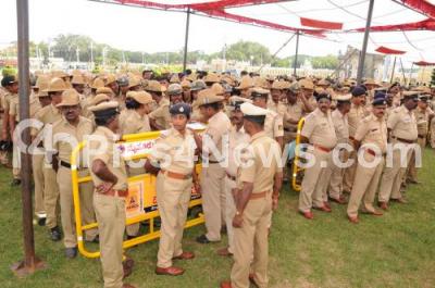 Photo Caption : Police personnel preparing themselves for the Dasara 2016 procession at Mysuru Palace, in Mysuru on Monday 10th October 2016
