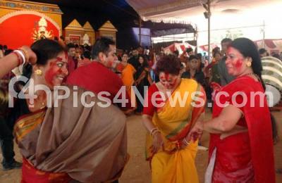 Event Description : Bengalese residing in bengaluru in large numbers seen celebrating Durga Pooja in great fervor and gaiety at RBANMS grounds organized by Bengalese Association as Pooja celebrations, shopping greeting each other seeking elders blessing, as there is so much cheer associated with NAVARATRI as the city is soaked up with revelry, in Bengaluru on Tuesday 11th October 2016