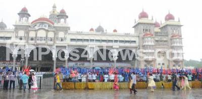 Heavy rains lashed in Mysuru City during the Dasara Procession, celebrating Mysuru Dasara 2016 Festival, in Mysuru on Tuesday 11th October 2016