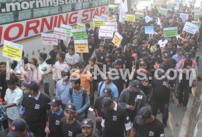 Photo Caption : Members of Karnataka State Government Ophthalmic Officers Association participated in the “Walk in Dark†event to mark the World Blind Day at Freedom Park, in Bengaluru on Friday 14th October 2016