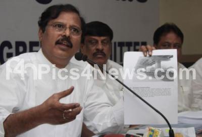 Congress leader VR Sudarshan and Congress Former Mayors of Bengaluru City addressing a press conference regarding the Steel Flyover at KPCC office, in Bengaluru on Saturday 15th October 2016