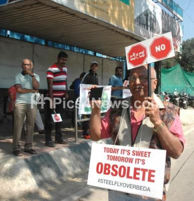 People took out a human chain protest against the proposed Steel Bridge from Chalukya Circle to Hebbal, in Bengaluru on Sunday 16th October 2016