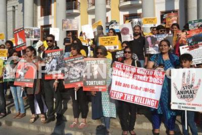 Photo Caption : Animal lovers and citizens participated in a movement rally against the animal abuse at Town Hall, organised by India Unites For Animals, in Bengaluru on Sunday 16th October 2016