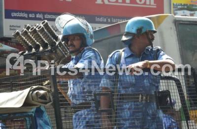 Photo Caption : RAF and police personnel were seen deployed in large numbers for the Funeral procession of Rudresh at Shivajinagar, RSS and BJP worker, who was murdered at Kamaraj Road near Commercial Street, in Bengaluru on Tuesday 18th October 2016