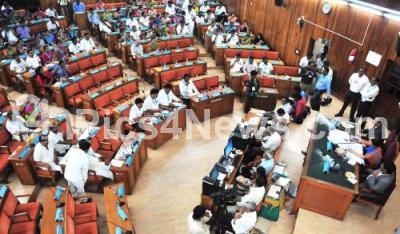 Photo Caption : Ruling party and opposition party Councilors during BBMP Standing Committee election at BBMP, in Bengaluru on Thursday 20th October 2016