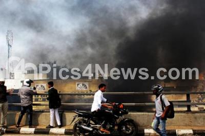 Photo Caption : Huge smoke coming out at the Mysore road flyover, after fire broke out at garbage dumping place at KR Market, in Bengaluru on Friday 21st October 2016