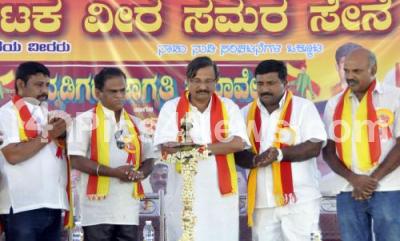 Photo Caption : Dr Nallur Prasad RK inaugurated the Kannada Jagruti Samavesha organized by Karnataka Veera Samara Sene at Freedom Park, in Bengaluru on Sunday 23rd October 2016