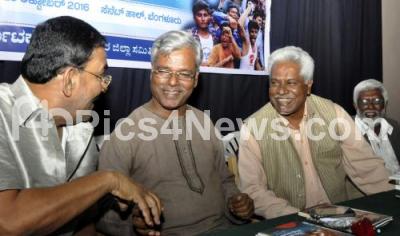 Photo Caption : Shivaramareddy with Arvind Malagatti, Basava Lingaiah and Gopalakrishna during discussion programme on Land and Home Scheme for Dalits , organized by Dalita Hakku Samiti at Sikshakara Sadana, in Bengaluru on Sunday 23rd October 2016