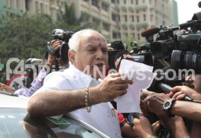Photo Caption : BS Yeddyurappa, former Karnataka chief Minister and state BJP president addressing the media after being acquitted along with the others in the Rs 40 crore mining kickback case at City Court premises, in Bengaluru on Wednesday 26th October 2016
