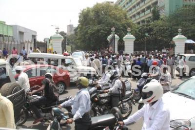 Photo Caption : Crowd gathered at City Civil Court after BS Yeddyurappa, former Karnataka chief Minister and state BJP president BS Yeddyurappa and all others were acquitted in the Rs 40 crore mining kickback case at City Civil Court premises, in Bengaluru on Wednesday 26th October 2016