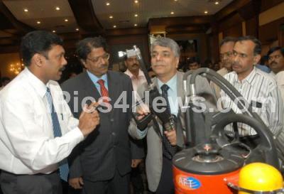 Photo Caption : PB Maheshi, Chief Secretary, Govt of Karnataka at the Symposium on New Trends and Challenges in Safety Health Environment Management in Hazardous Industries at hotel Atria organised by Karnataka State Institute Dept of Factories and Boilers. H Srinivasaiah, Director, Factories and Boilers and others are seen, in Bangalore on Tuesday 4th Dec 2007