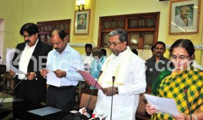 Event Description : Chief Minister Siddaramaih with LK Atheeq, SC Kauthia, Chief Secretary and Rathna Prabha, ADDl CS Development taking oath during Rastriya Ekata Divas at Conference Hall, Vidhana Soudha, in Bengaluru on Friday 28th October 2016