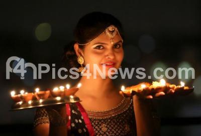 Lighting candle and clay lamp in their house and at temples during Diwali night, in Bengaluru on Friday 28th October 2016