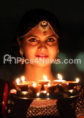 Event Description : Lighting candle and clay lamp in their house and at temples during Diwali night, in Bengaluru on Friday 28th October 2016