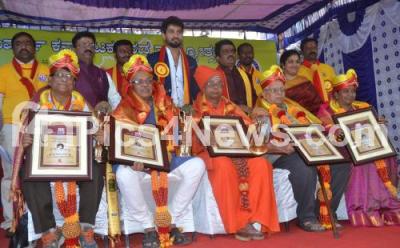 Photo Caption : Prof GS Siddalingaiah with Sri Dr Basavalinga Pattadevaru and others awardees were presented with DS Max Sahitya Awards during the 61st Kannada Rajyotsava Day celebrations at Besom Office, Nagavara, in Bengaluru on Tuesday 1st November 2016
